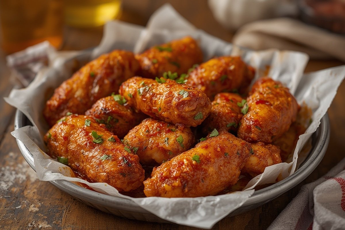 | 2 lbs chicken wings (split into drumettes/flats) | Smaller pieces crisp evenly | Use pre-cut wings; thighs for meatier bites |