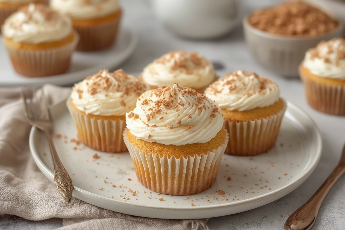 Bake 18–22 minutes until tops spring back lightly. Cool 10 minutes in pans—this prevents collapsing! Then move to wire racks. Pro tip—brush warm cupcakes with simple syrup (equal parts sugar/water, heated until dissolved) for extra moisture. Frost when completely cool with buttercream, whipped cream, or a dusting of powdered sugar.
