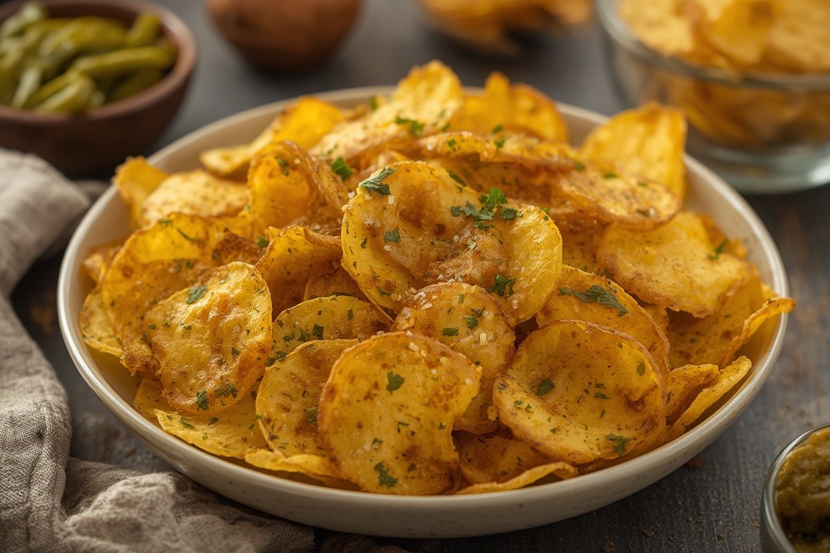 Freeze brined/dried raw slices for 3 months – fry straight from freezer, adding 1 minute cooking time. Fully cooked chips store airtight for 4 days, but refresh in 400°F oven for 4 minutes to restore crunch. Layer chips between parchment paper to prevent flavor transfer between batches.