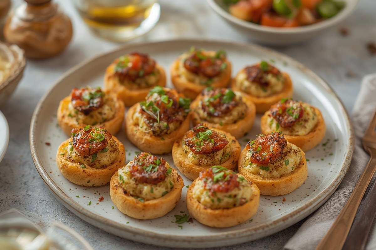 Crispy, creamy, crunchy elements make easy appetizer recipes memorable. Top silky hummus with za’atar-spiced roasted chickpeas. Pair soft brie bites with honeycomb chunks and smoked almonds. For gluten-free guests, serve buffalo cauliflower bites with celery sticks and chilled ranch dip.